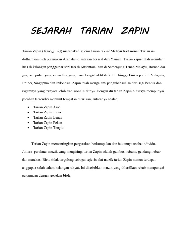 Latar Belakang Ringkas Tarian Zapin Di Johor Pdf