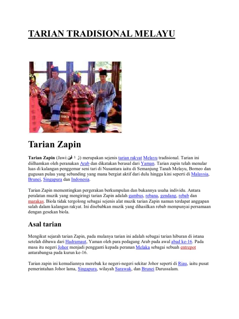 . Tarian Zapin merupakan salah satu dari pada berbagai jenis tarian Melayu yang masih ada hingga sekarang. Nur anisuraya bt abd rahman 2019436368 hkb115 a. Tari Zapin merupakan salah satu jenis tarian rakyat Melayu yang masih eksis dan sering dipertontonkan sampai sekarang.